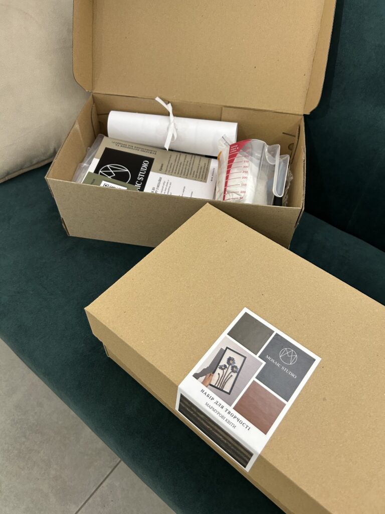 Наші набори підходять для новачків і не потребують спеціальних навичок — це мозаїка своїми руками, доступна кожному. Процес роботи заспокоює, надихає та дозволяє доторкнутися до мистецтва натурального каменю.
